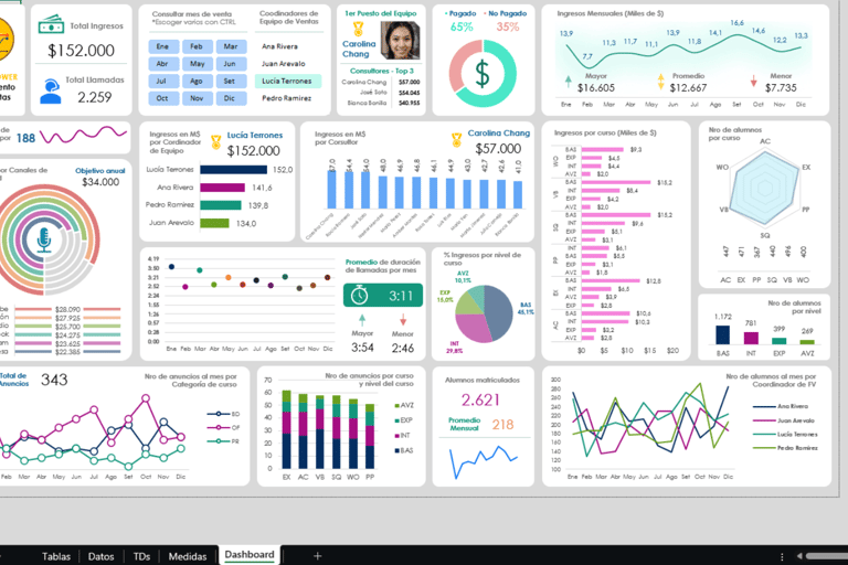 Visualización clara de datos: Los dashboards presentan los KPIs de manera gráfica y comprensible, facilitando el análisis rápido y la toma de decisiones basadas en datos.